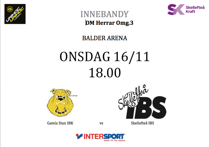 Kom och se !!! Skellefteå IBS Herrar möter Gamla Stans division1 lag i DM nu på onsdag.
